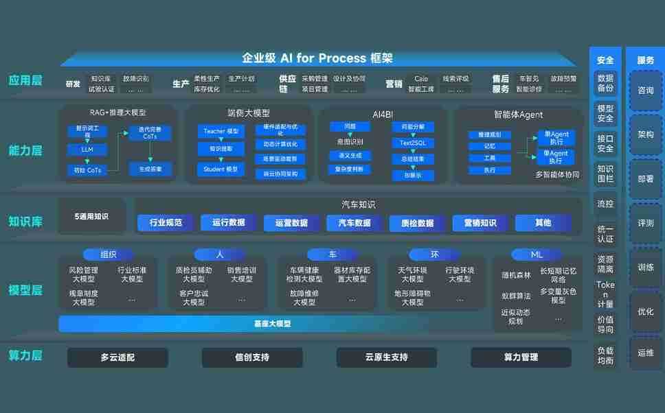 z6尊龙旗舰厅问学智车解决方案是一套基于AI技术的汽车行业智能化系统,,覆盖从底层算力到顶层AI应用的全栈方案。。方案由算力层、、、、模型层和应用层组成:算力层,,方案支持多种一体机配置,,具备云端灵活部署、、多云适配以及动态优化计算资源的能力;模型层,,,z6尊龙旗舰厅问学平台版提供了企业级AI应用一站式构建与管理平台,,,,支持基于后训练强化技术的汽车企业专属模型的训练、、、、评测和运营;应用层,,z6尊龙旗舰厅问学DeepSeek版提供包括超级员工、、、、智能招采、、、智能营销、、、智能客服、、、、AI for BI等一系列解决方案,,,,可助力汽车行业实现数字化转型,,,,让管理更智能、、响应更敏捷。。。。